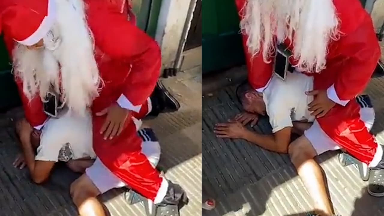 (VIDEO) Repartidor disfrazado de Papá Noel captura a ladrón