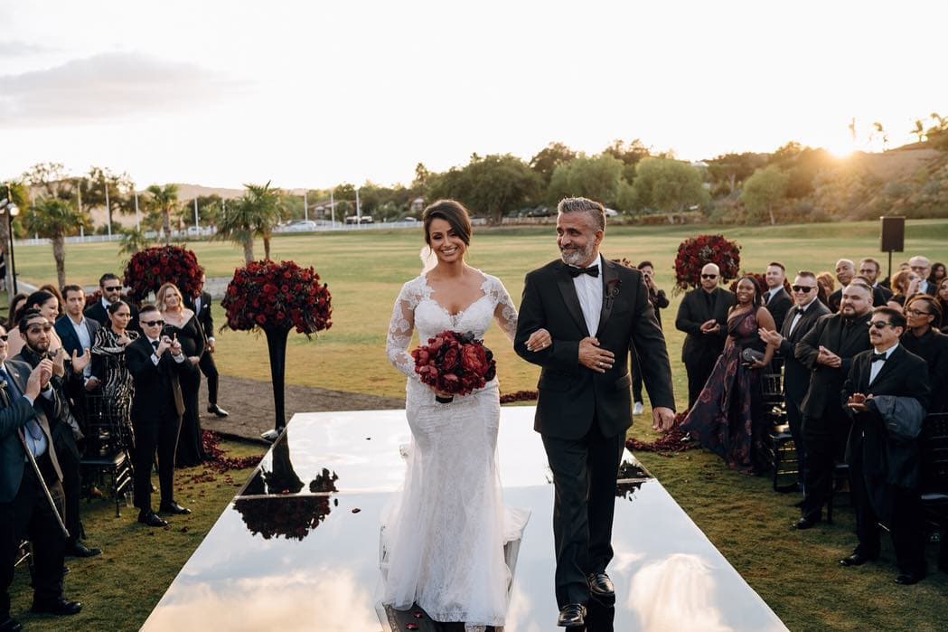 According to Vogue, the bride had one a formfitting Monique Lhuillier gown with a long train and Spanish veil while Miguel was fitted with a custom tuxedo by Van Van.