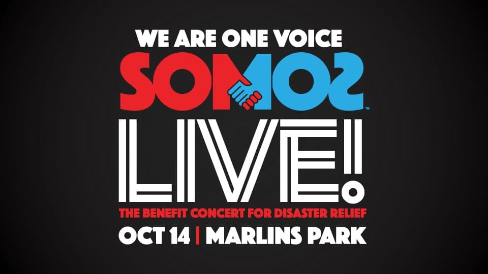 Somos Live! will be held at Miami's Marlins Park on Saturday, October 14th. Latin artists Marc Anthony, Camilia, Gente de Zona, Nicky Jam, DJ Khaled, Daddy Yankee, Magic!, Nacho, Prince Royce, Romeo Santos and Alejandro Sanz will be performing live.
