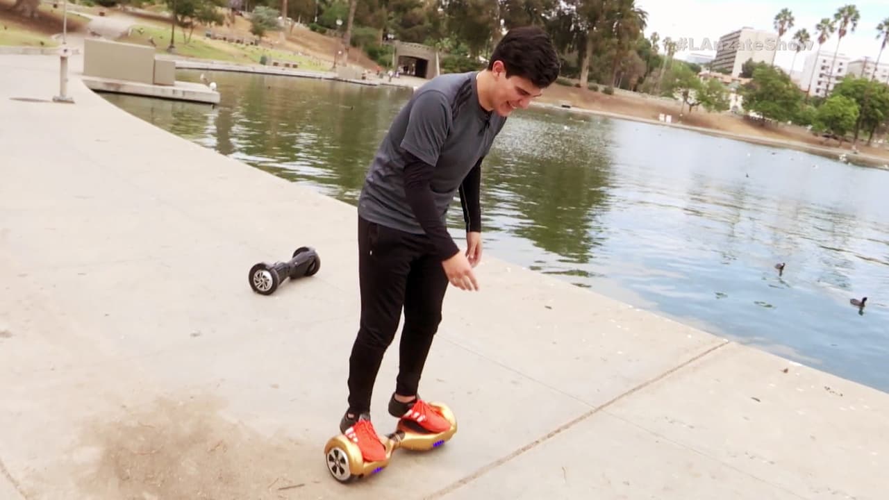 El guapo Adriel Favela se atrevió a montarse en un ‘hoverboard’ con Fer, mira cómo le fue.