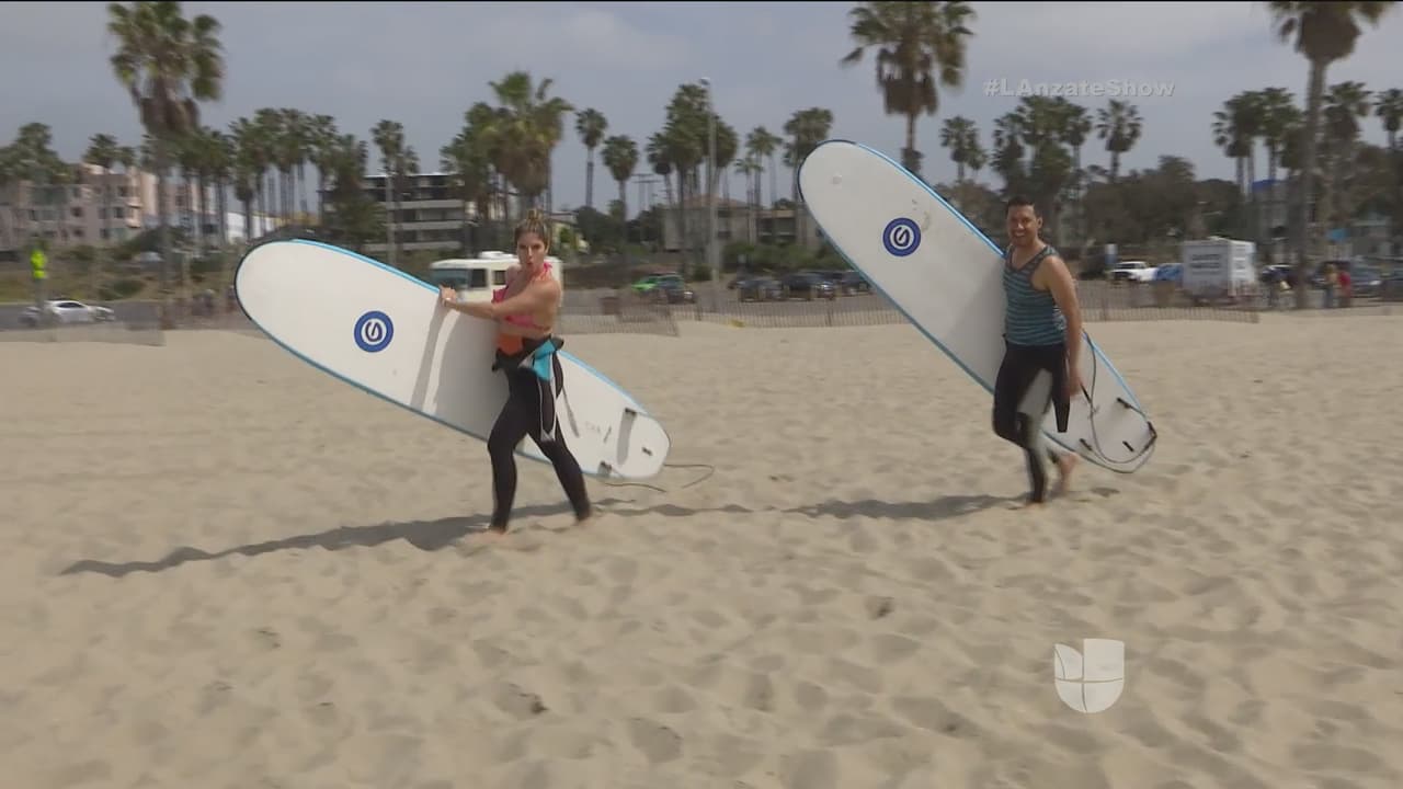 Fer y Luis se las dieron de valientes y se fueron a las playas de Santa Mónica a surfear.