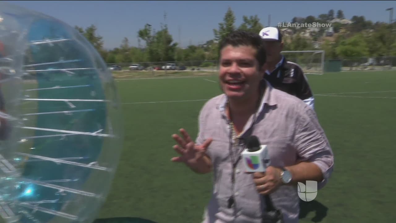 Mira como le fue a los integrantes de ‘La Arrolladora’ cuando aceptaron jugar la divertidísima práctica de 'Bubble Ball' con Luis y con Fer.