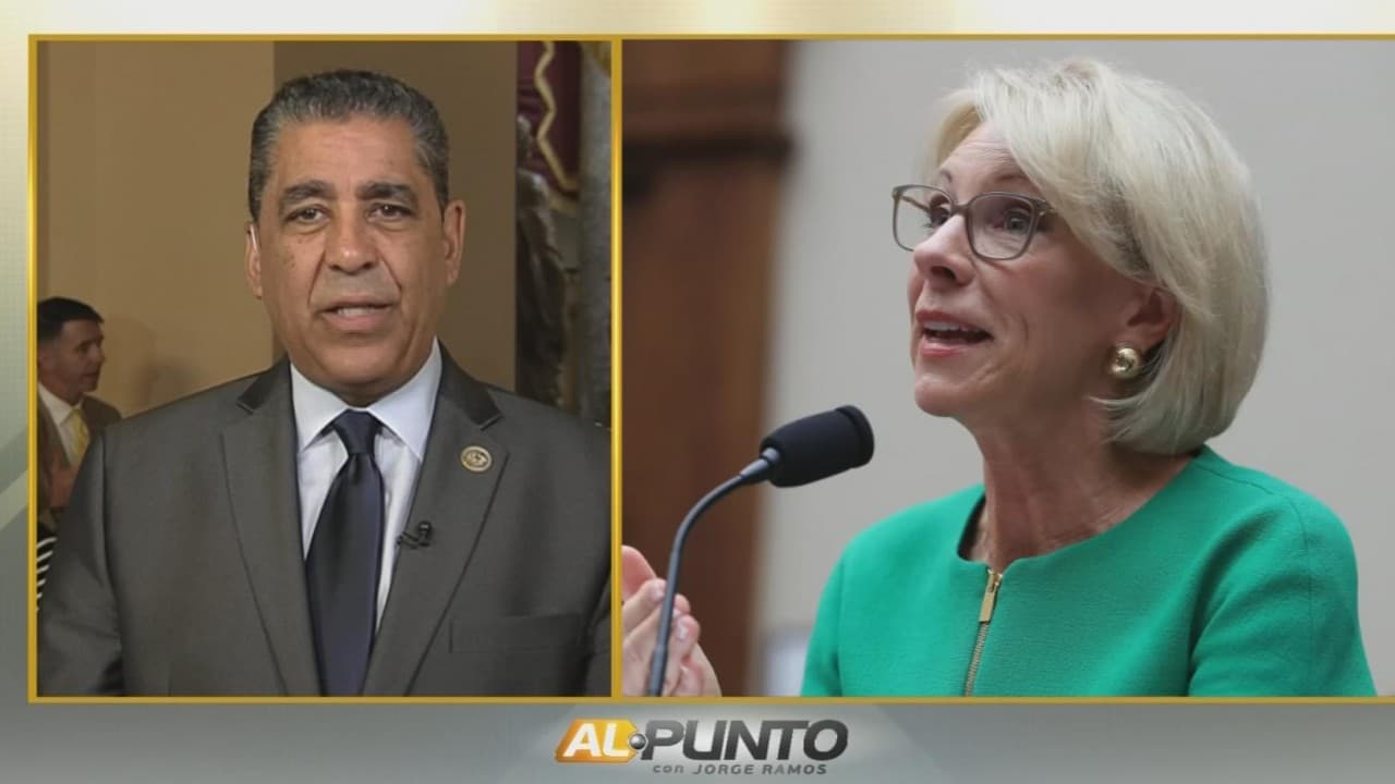 La secretaria de Educación, Betsy DeVos, dijo que dependía de las escuelas si querían o no llamar ICE en caso de tener estudiantes indocumentados. El congresista Adriano Espaillat considera que DeVos debería renunciar. Por otra parte, tras el arresto de dos mujeres por hablar español en el país, responde si se ha convertido peligroso usar este idioma en Estados Unidos.