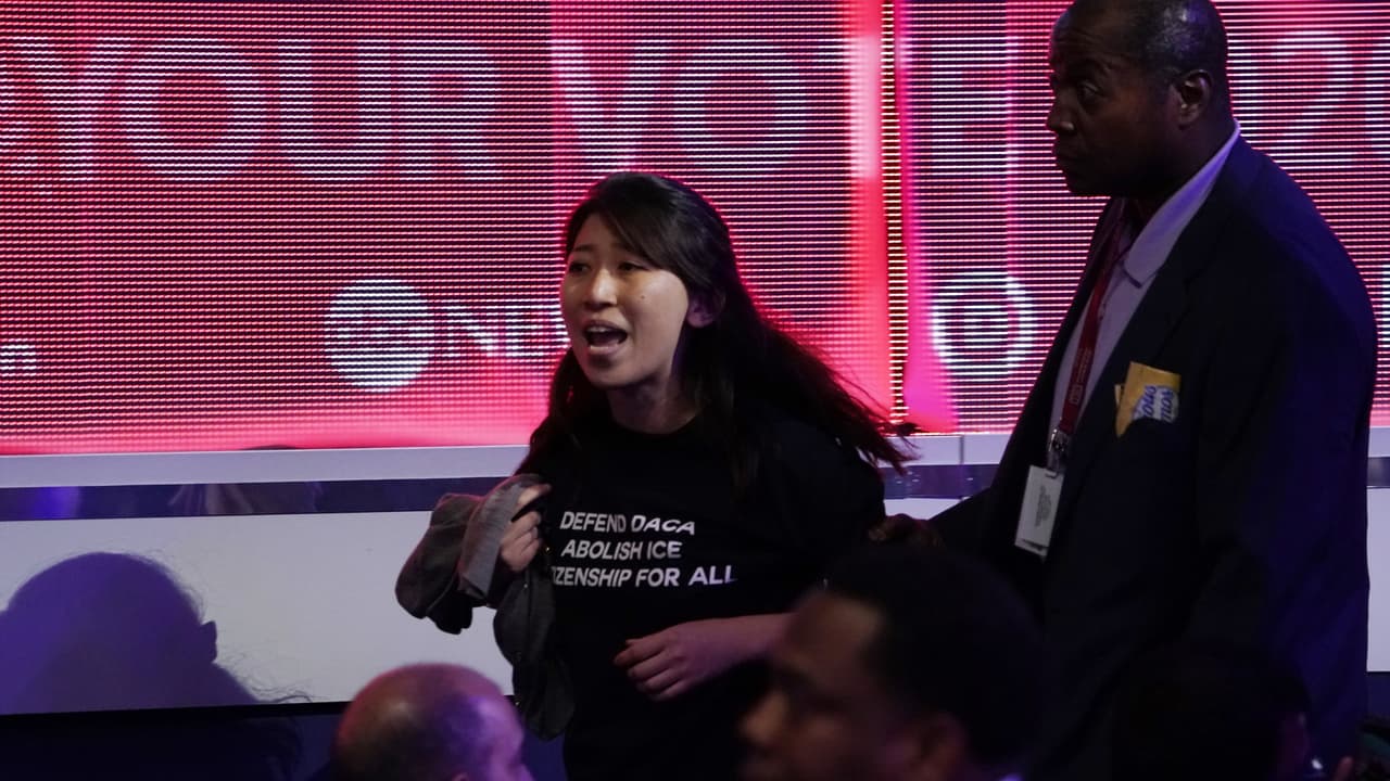 Un grupo de jóvenes dreamers irrumpió mientras era el turno de Biden para pedir una solución permanente a su situación. "Somos beneficiarios de DACA. Nuestra vida está en riesgo", es lo que gritaron los manifestantes que interrumpieron a Joe Biden en el debate, según le confirmó a Univision Noticias César Espinosa, director de Familias Inmigrantes y Estudiantes en Lucha (FIEL).