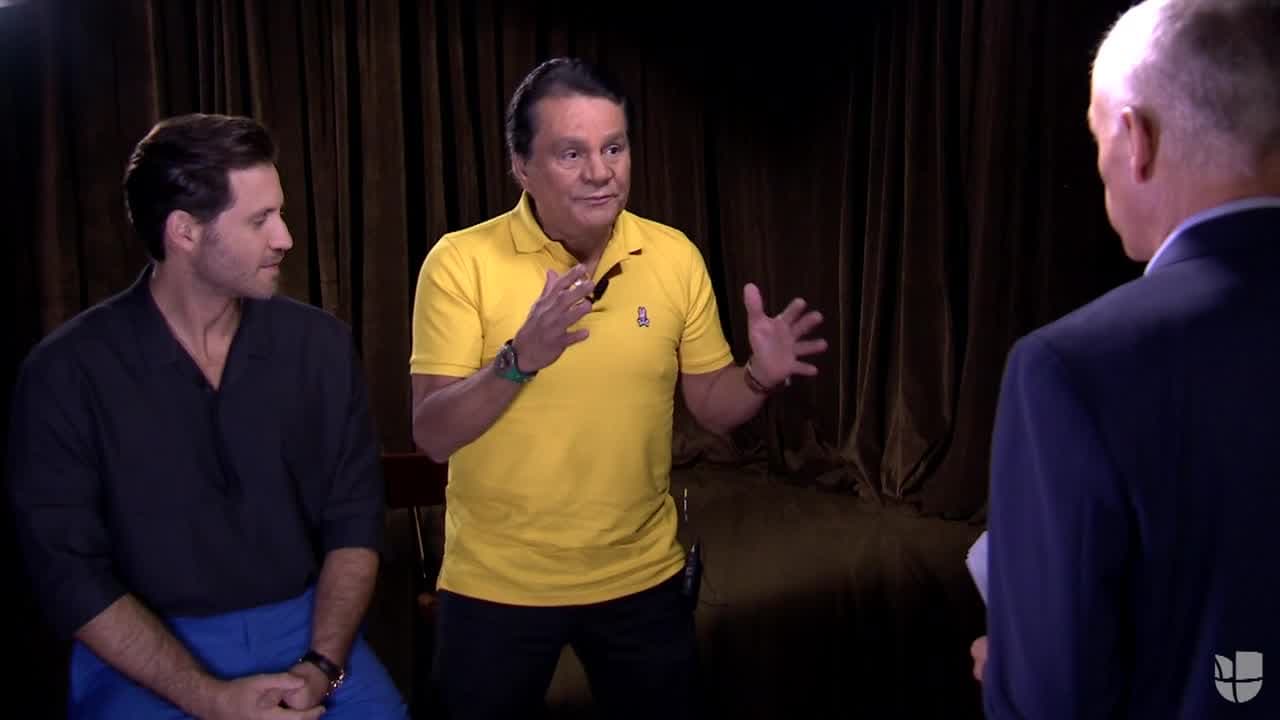 El legendario boxeador panameño Roberto Durán y el actor venezolano Edgar Ramírez, quien lo interpreta en la película "Hands of Stone", tomaron unos minutos para mostrarle algunos trucos de boxeo a nuestro presentador de Univision.