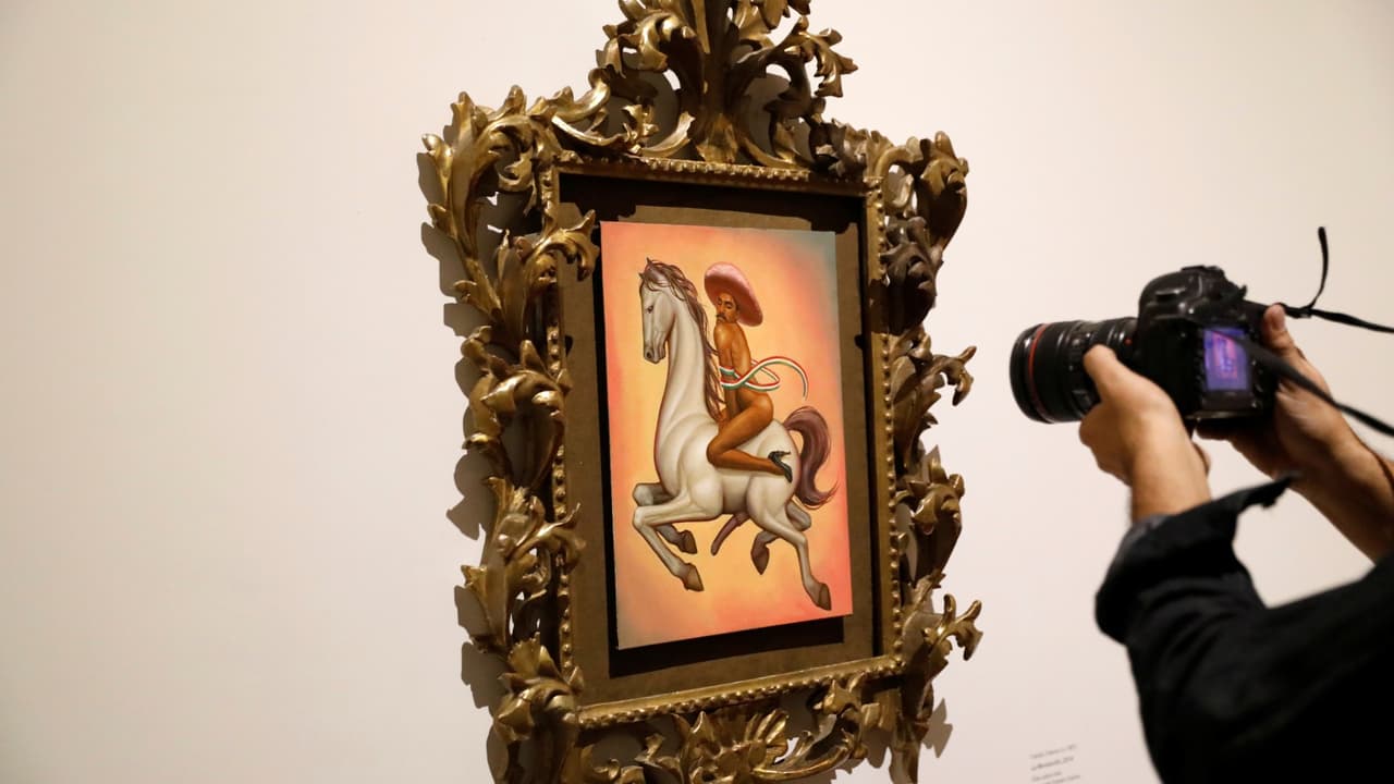 Fabián Cháirez es el pintor del cuadro del héroe mexicano Emiliano Zapata. La imagen ha causado controversia porque lo muestra desnudo, sobre un caballo y con zapatos de mujer. El artista responde sobre si se están rompiendo mitos.