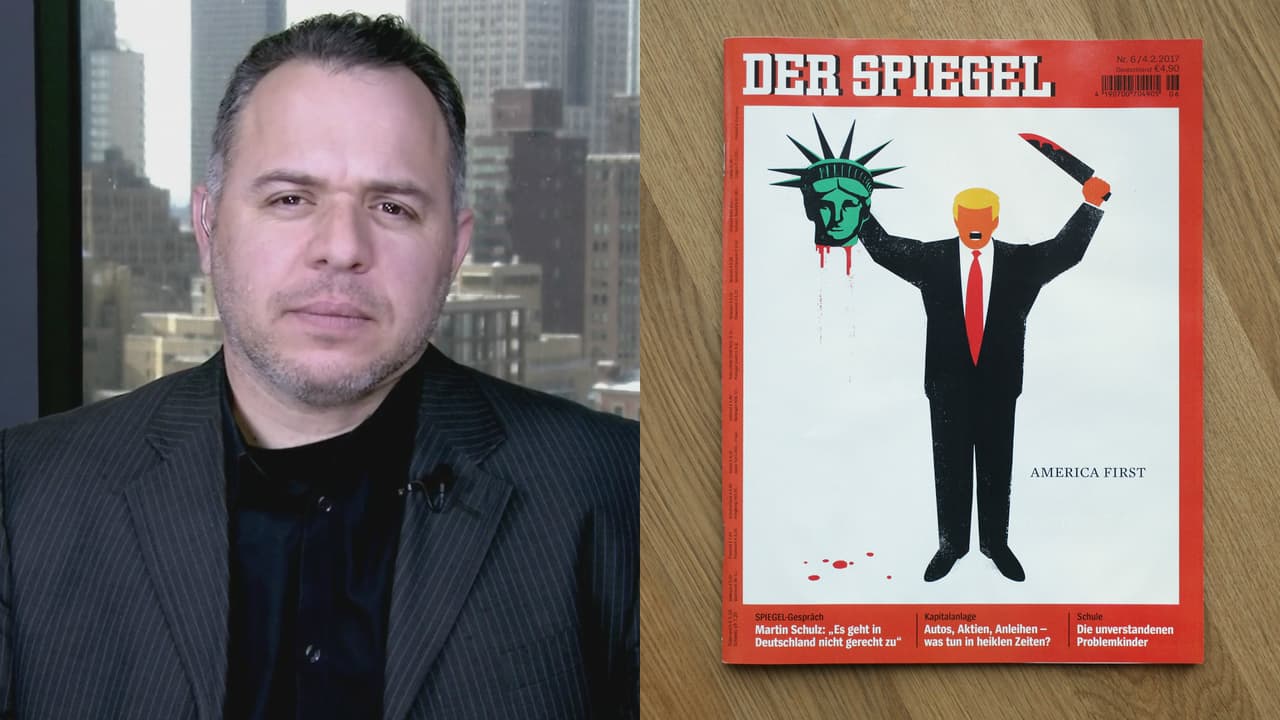 Edel Rodríguez es el diseñador gráfico que creó una de las portadas más controversiales que se hayan hecho sobre Donald Trump. La imagen fue publicada por la revista alemana 'Der Spiegel'. Él se imaginó a un Donald Trump, sin ojos, cortándole la cabeza con un cuchillo a la estatua de la libertad. Edel nos habla de la imagen y además nos dice qué ve en Trump que le recuerda a Fidel Castro.