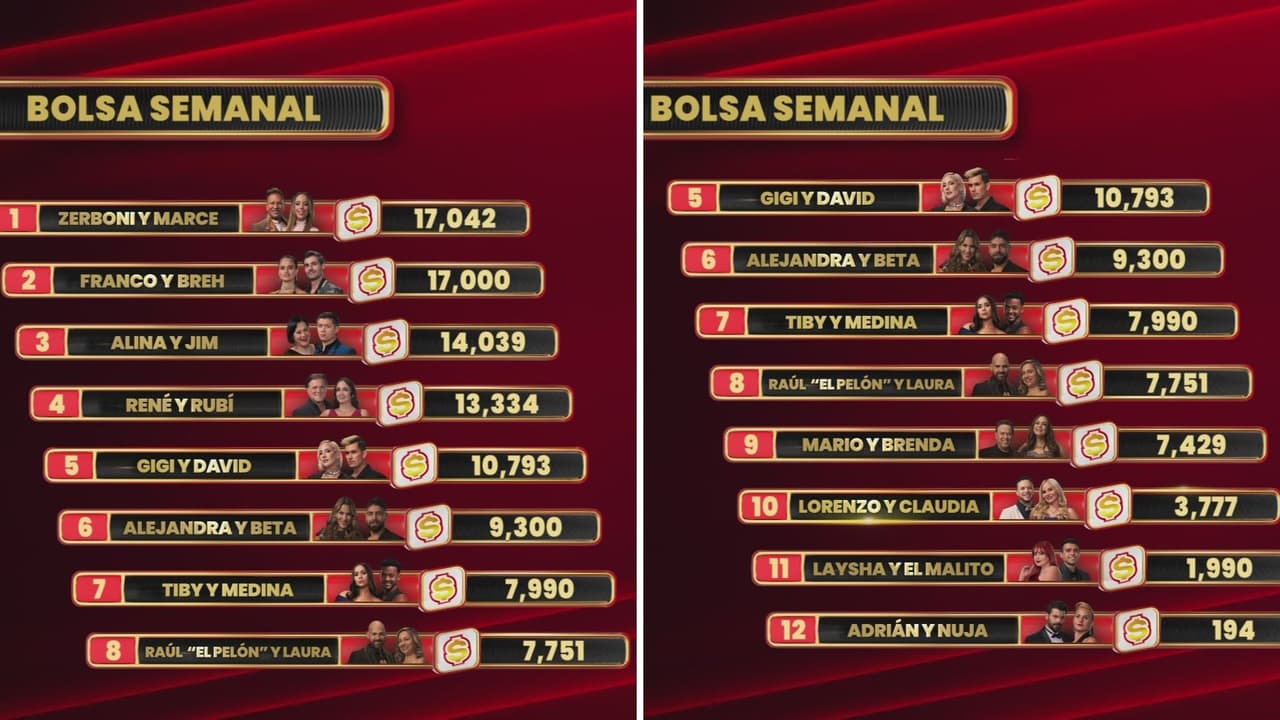 El dinero de la semana empezó a darle vida al ranking semanal. La pareja más fuerte, podrá domir en la Suite Diamante. Así quedaron tras los primeros desafíos: