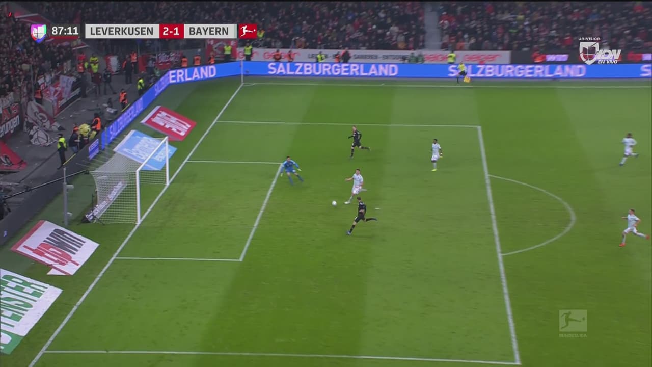 En una jugada en que el videoarbitraje confirmó la validez de la jugada, el Leverkusen aumentó la ventaja y terminó de sepultar al Bayern de Múnich que intentó hasta el final el gol del empate.