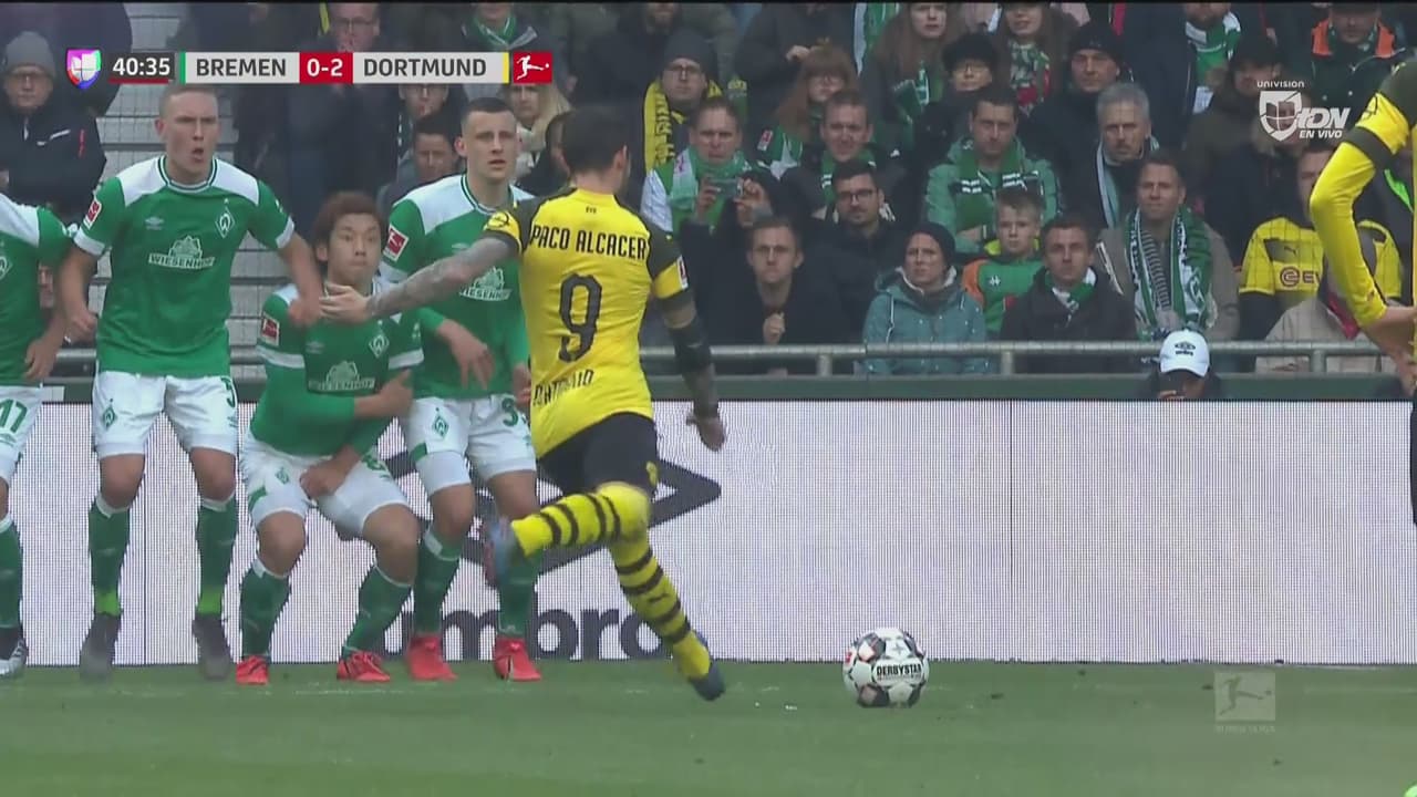 Con un espectacular cobro de tiro libre ‘Paco’ Alcácer marca el 0-2 para el Dortmund