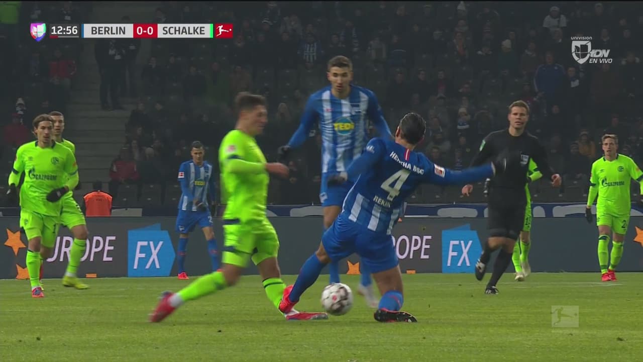El defensor del Hertha le llegó de lleno al tobillo de Alessandro Schöpf, aunque de forma increíble, el árbitro lo dejó en una amonestación al 12’.
