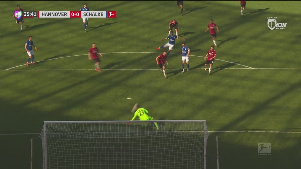 Benjamin Stambouli del Schalke perforó por el centro del área, se quitó a un par de rivales y ya cantaba el gol con su disparo, pero el arquero del Hannover lo contuvo al 35’.