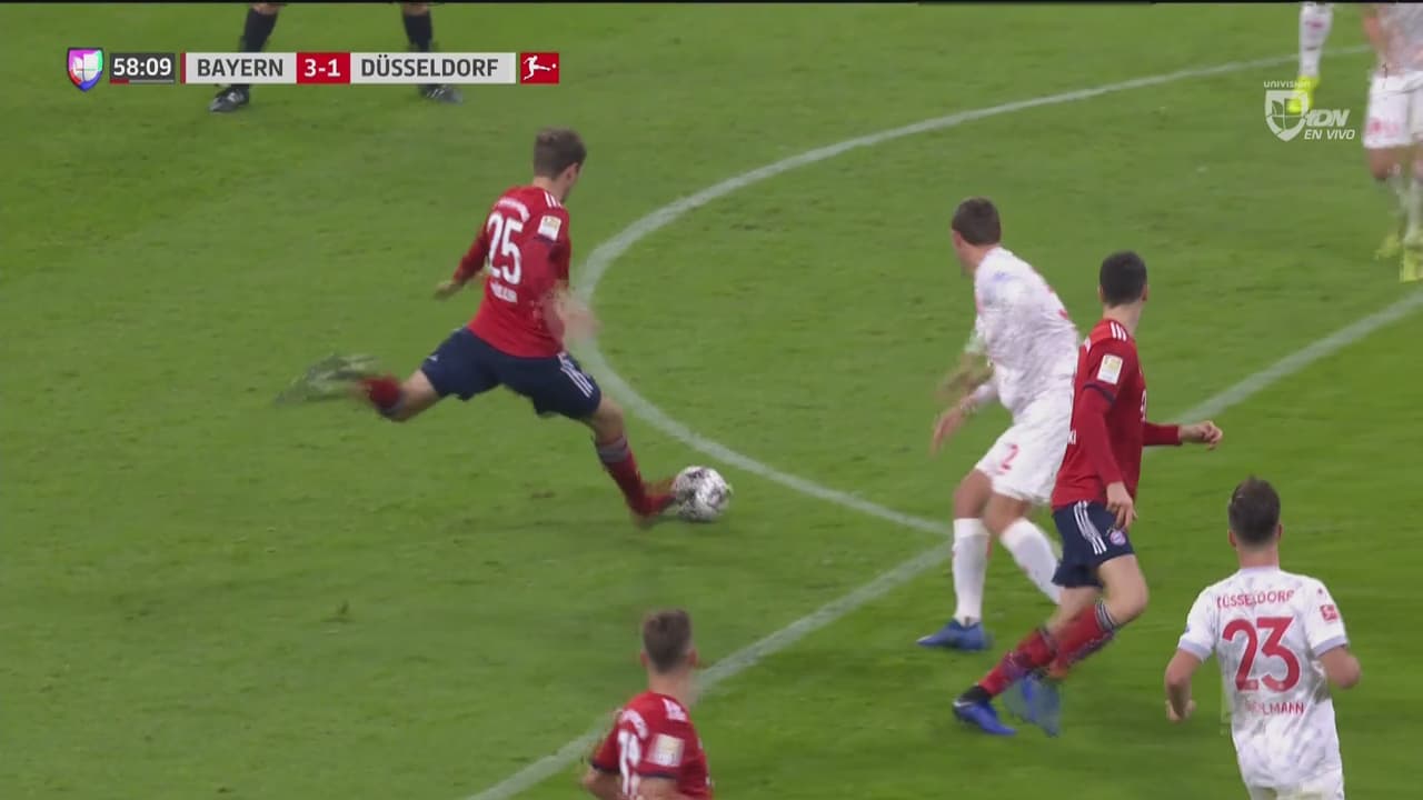 Cual si fuera básquetbol, el goleador polaco pivoteó y retuvo el balón para asistir el remate raso de Thomas Müller al fondo de la red.