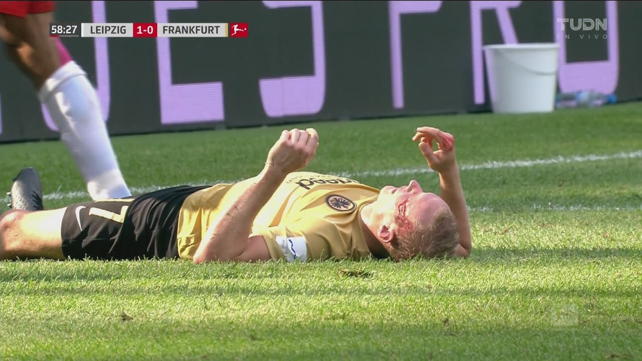 El mediocampista del Eintracht Frankfurt recibió un manotazo de Yussuf Poulsen. El árbitro castigó la acción con tarjeta amarilla.
