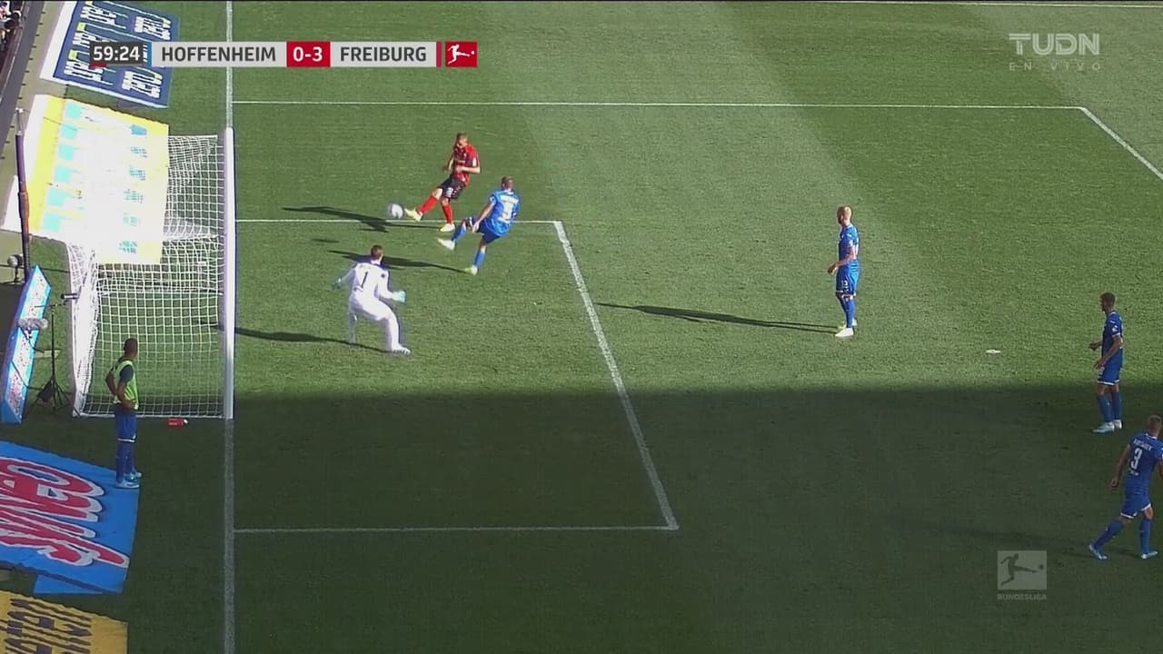 El delantero alemán le entró de primera intención al balón, luego de un a gran jugada colectiva que 'durmió' a los jugadores del Hoffenheim.