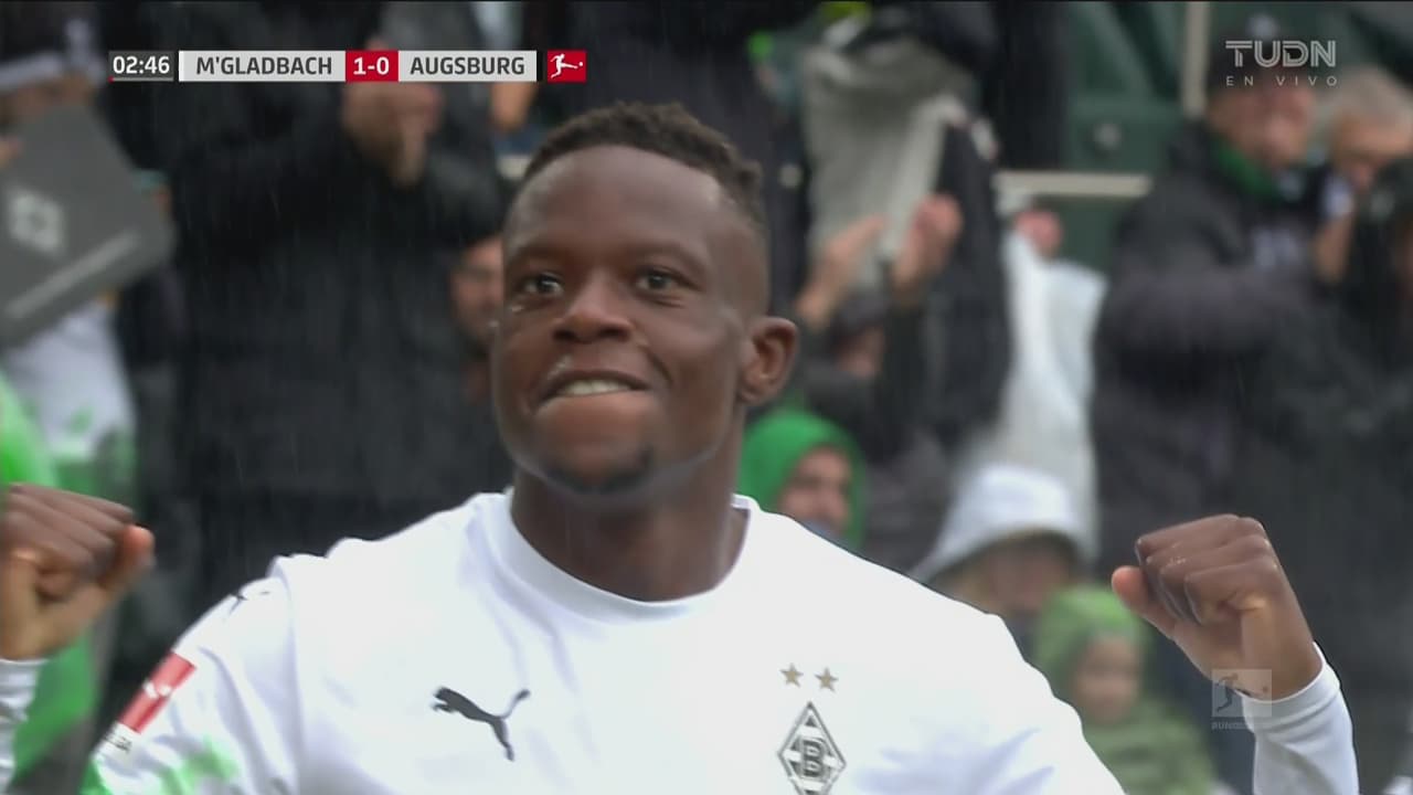 Borussia Mönchengladbach se va al frente con la buena jugada por la banda de la izquierda ante la nula respuesta de la defensa del Augsburg.