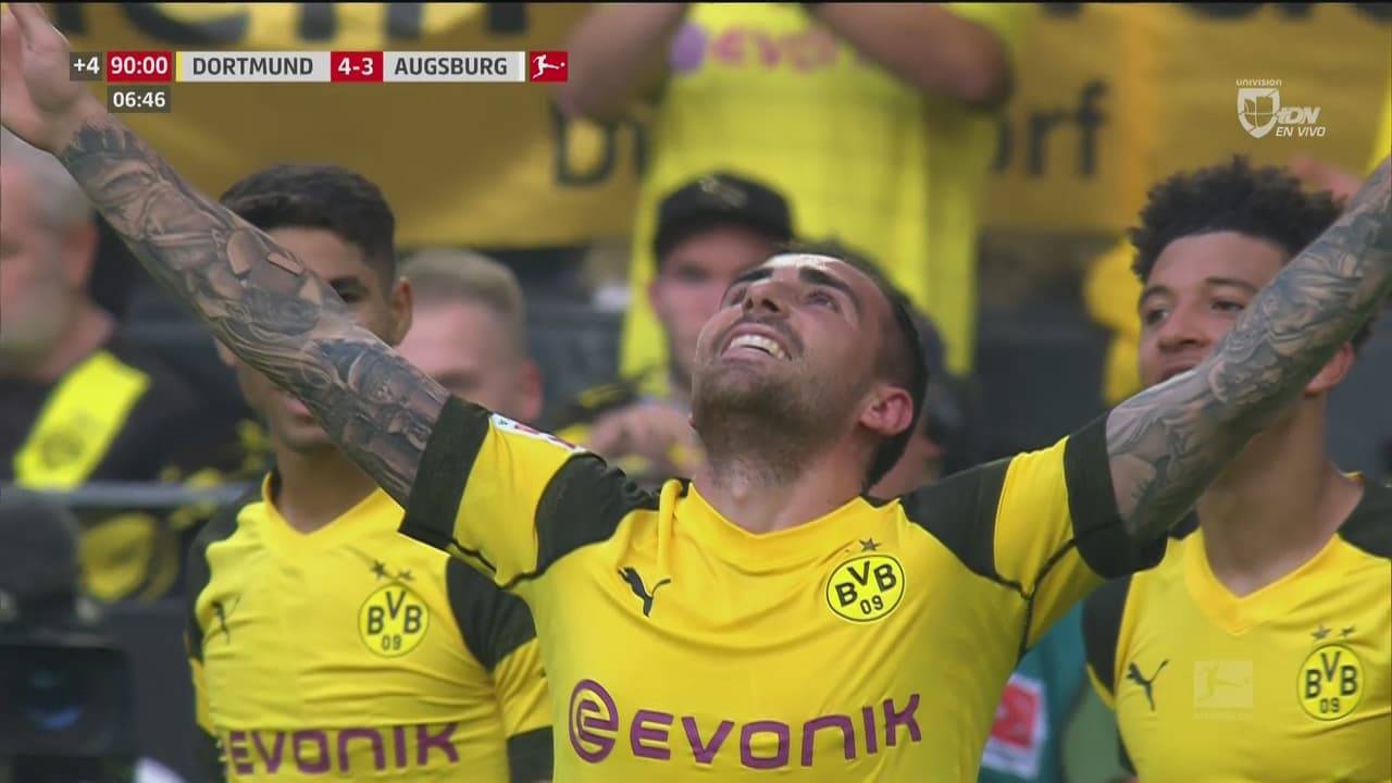 Golazo de Alcácer y el Dortmund anota el 4-3 que sentencia al Augsburg