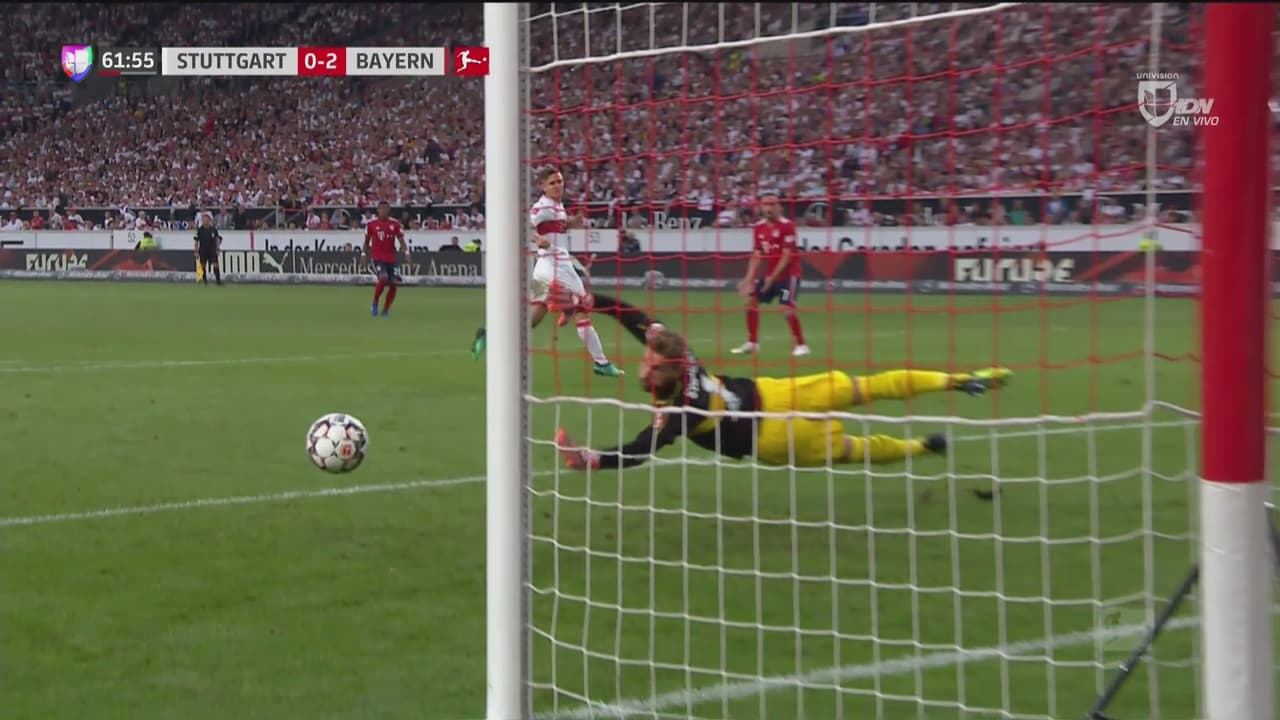 El polaco Robert Lewandowski se armó y sacó un bombazo cruzado que se coló entre las piernas del defensor y terminó en el fondo de la red, para ampliar la ventaja sobre el Stuttgart.