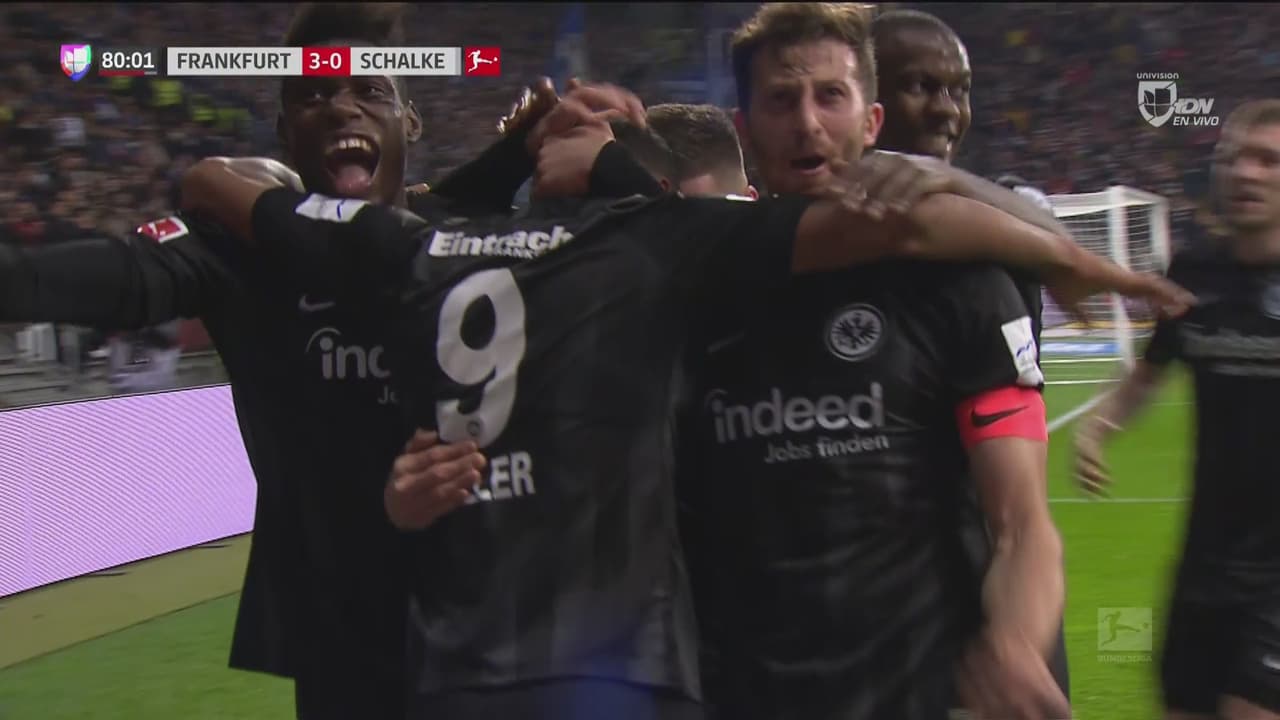 ¡Hasta de rebote la meten! Sebastien Haller le da forma a la goleada ante el Schalke