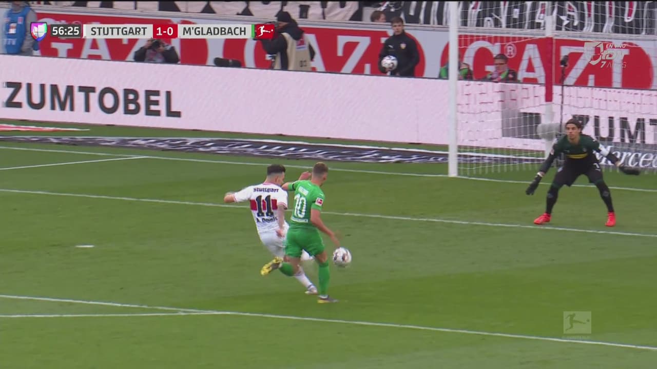 La defensa del Gladbach no supo despejar y Donis anota un gol que le da esperanza al Stuttgart