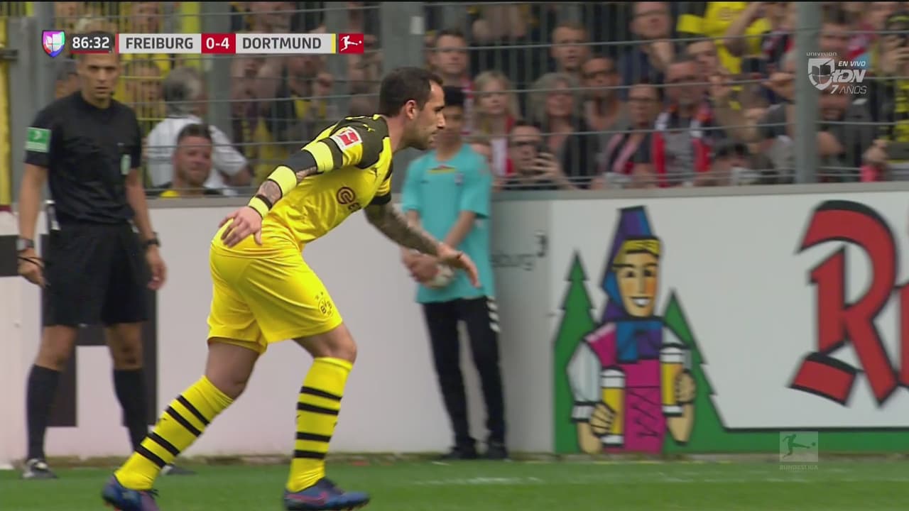Mano en área del Freiburg y Alcácer hace el cuarto para el Dortmund de pena máxima