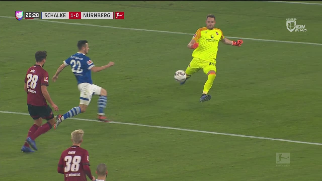El meta del Núremberg venía salvando a su escuadra pero pifió un rechace bien aprovechado por Steven Skrzybski.