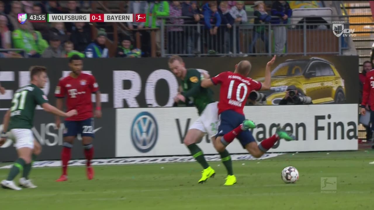 El jugador del Bayern Múnich intentó engañar al árbitro una vez más y le salió cara su mala actuación. El árbitro no cayó en su engaño y amonestó al futbolista holandés.