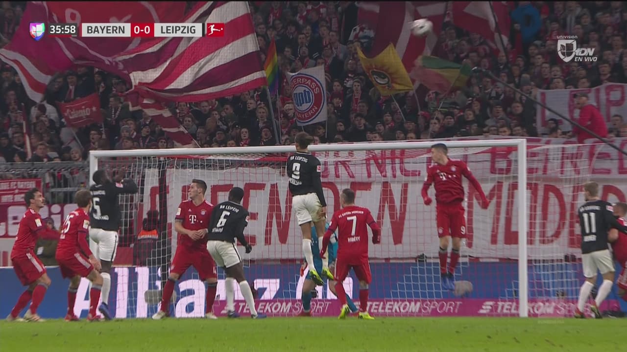 Upamecano aprovechó un buen centro de tiro de esquina para rematar de cabeza, sin la fortuna de que el balón llegara al fondo de la red del Bayern Munich.
