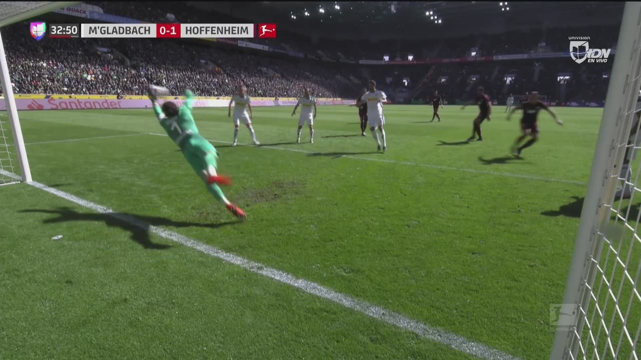 A los 32 minutos de la primera parte, aprovechando una jugada a balón parado desde el tiro de esquina, el lateral checo sacó un remate de cabeza fuerte y picado que dejó descolocado al guardameta del Mönchengladbach.