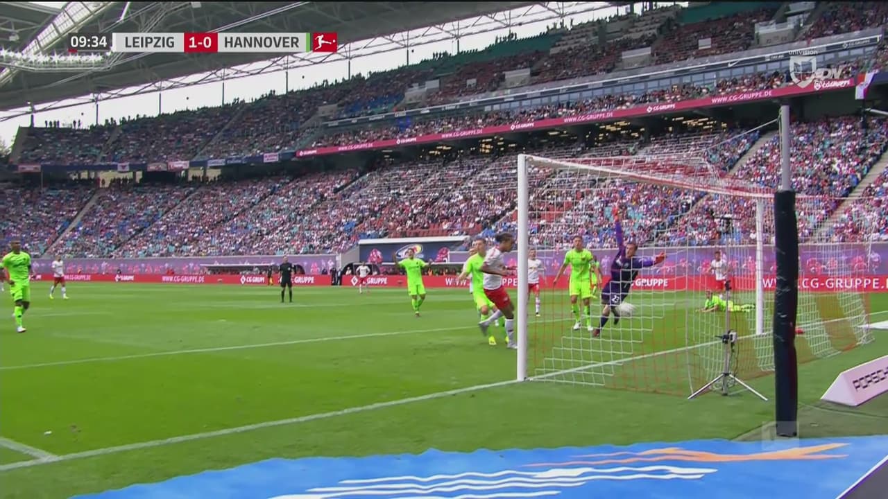 Poulsen a los nueve minutos pone el 1-0 del Leipzig ante el Hannover