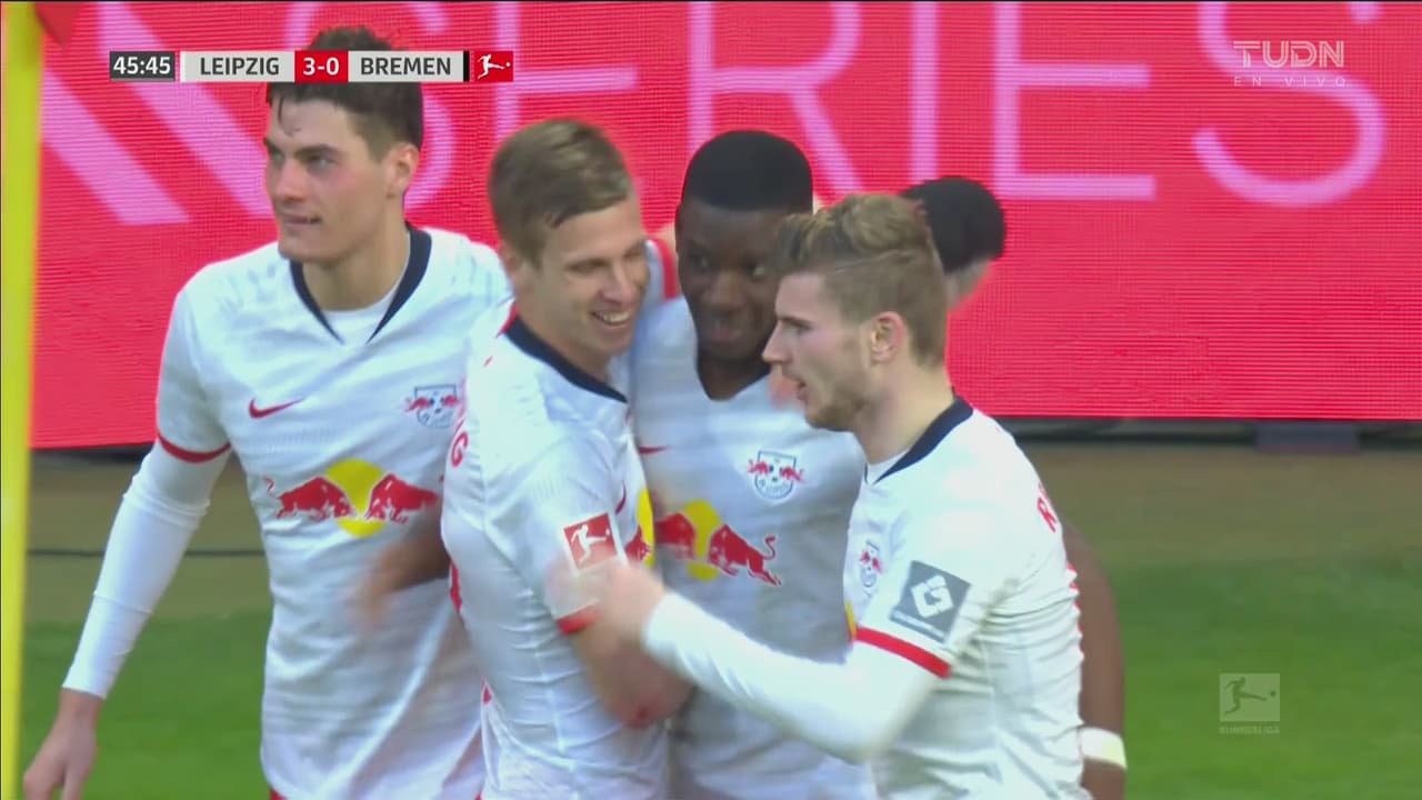 ¡Sin piedad! Regresan del descanso y Mukiele anota el 3-0 del Leipzig