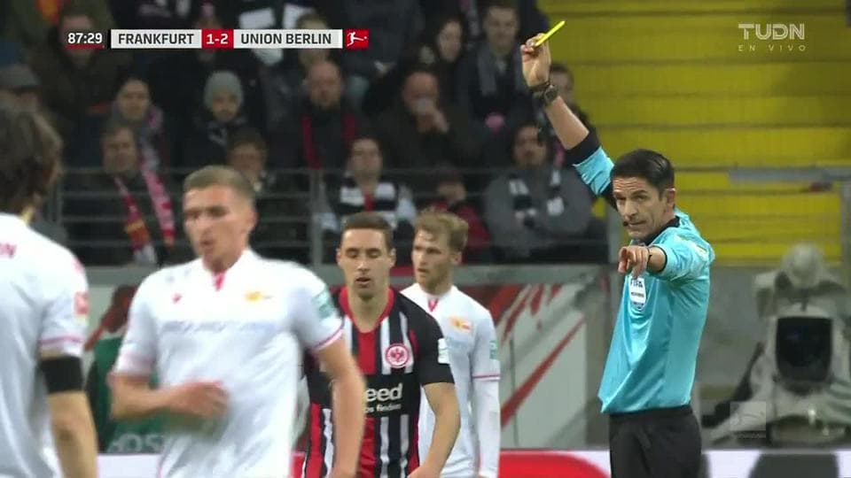 Tarjeta amarilla. El árbitro amonesta a Dominik Kohr de Eintracht Frankfurt
