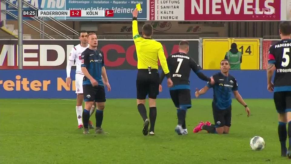 Tarjeta amarilla. El árbitro amonesta a Ellyes Skhiri de 1. FC Köln