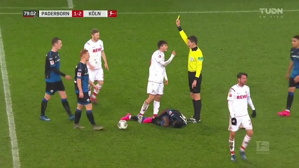 Tarjeta amarilla. El árbitro amonesta a Elvis Rexhbecaj de 1. FC Köln on March 6, 2020