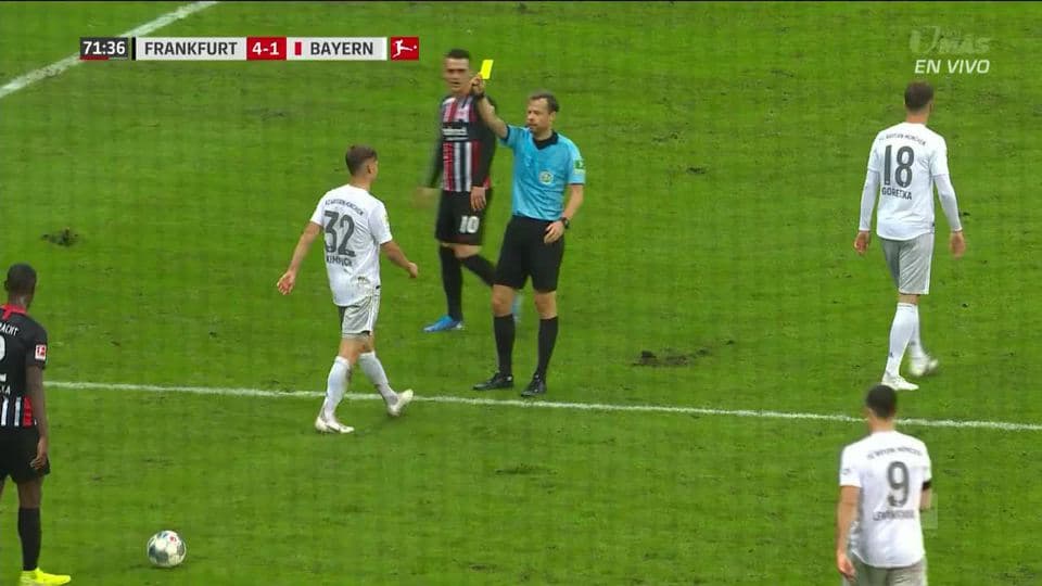 Tarjeta amarilla. El árbitro amonesta a Joshua Kimmich de FC Bayern München
