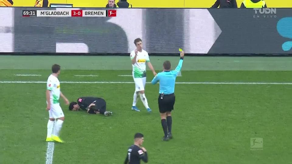 Tarjeta amarilla. El árbitro amonesta a Patrick Herrmann de Borussia Mönchengladbach on November 10, 2019