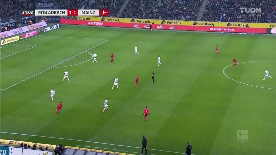 Tarjeta amarilla. El árbitro amonesta a ${PLAYER} de Borussia Mönchengladbach