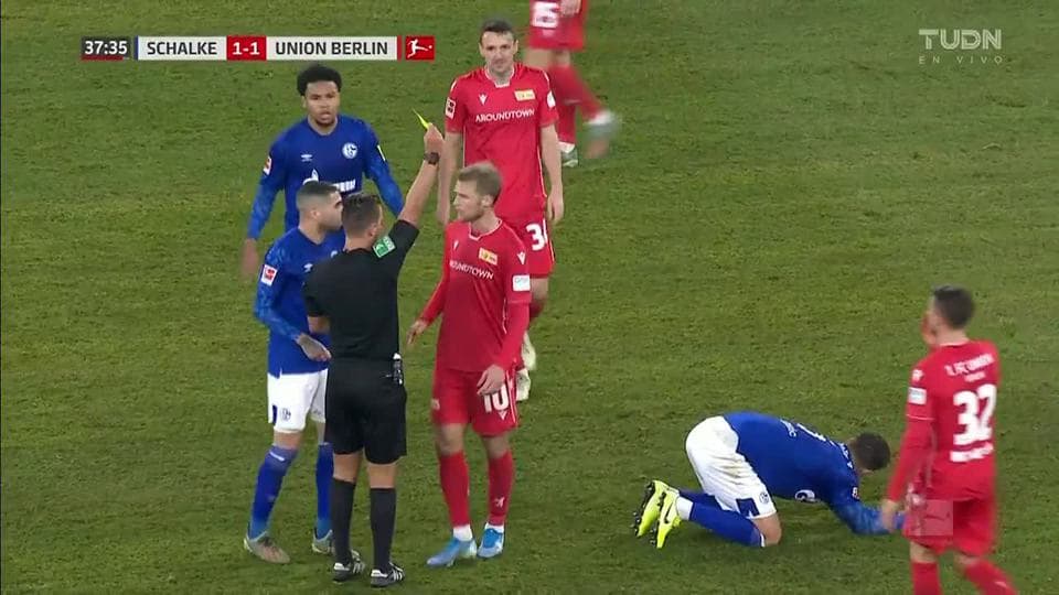 Tarjeta amarilla. El árbitro amonesta a Sebastian Andersson de 1. FC Union Berlin on November 29, 2019