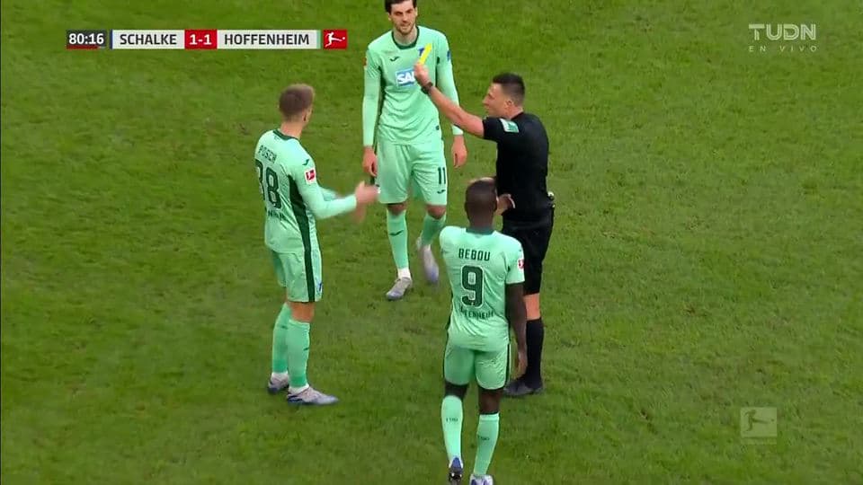 Tarjeta amarilla. El árbitro amonesta a Stefan Posch de TSG 1899 Hoffenheim