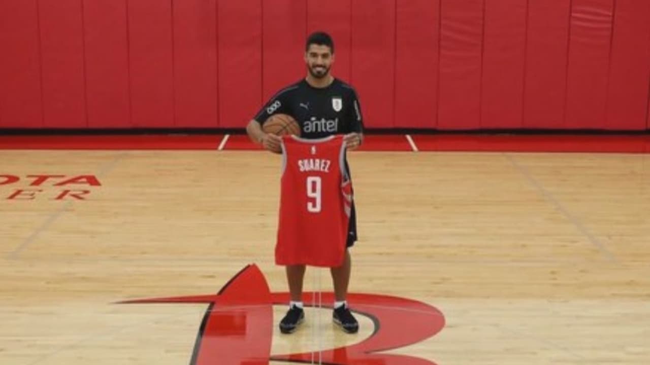 Luis Suárez aprovechó el viaje con la selección de Uruguay a Estados Unidos para conocer las instalaciones de los Rockets de Houston. Al final del recorrido, el futbolista salió con varios recuerdos del equipo de baloncesto.