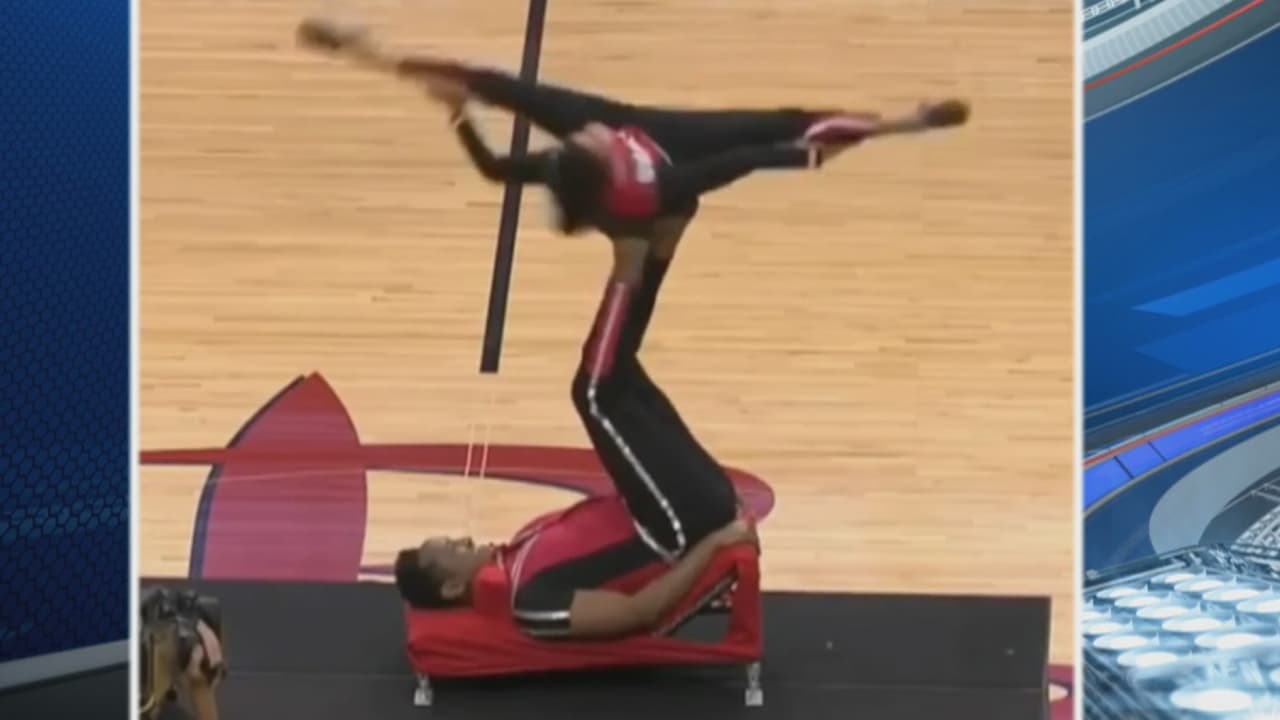 Una pareja de acróbatas se robó el show del entretiempo de un partido de NBA en Houston