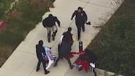 A los golpes: imágenes aéreas captan a saqueadores peleándose por la ropa que acababan de robar en California