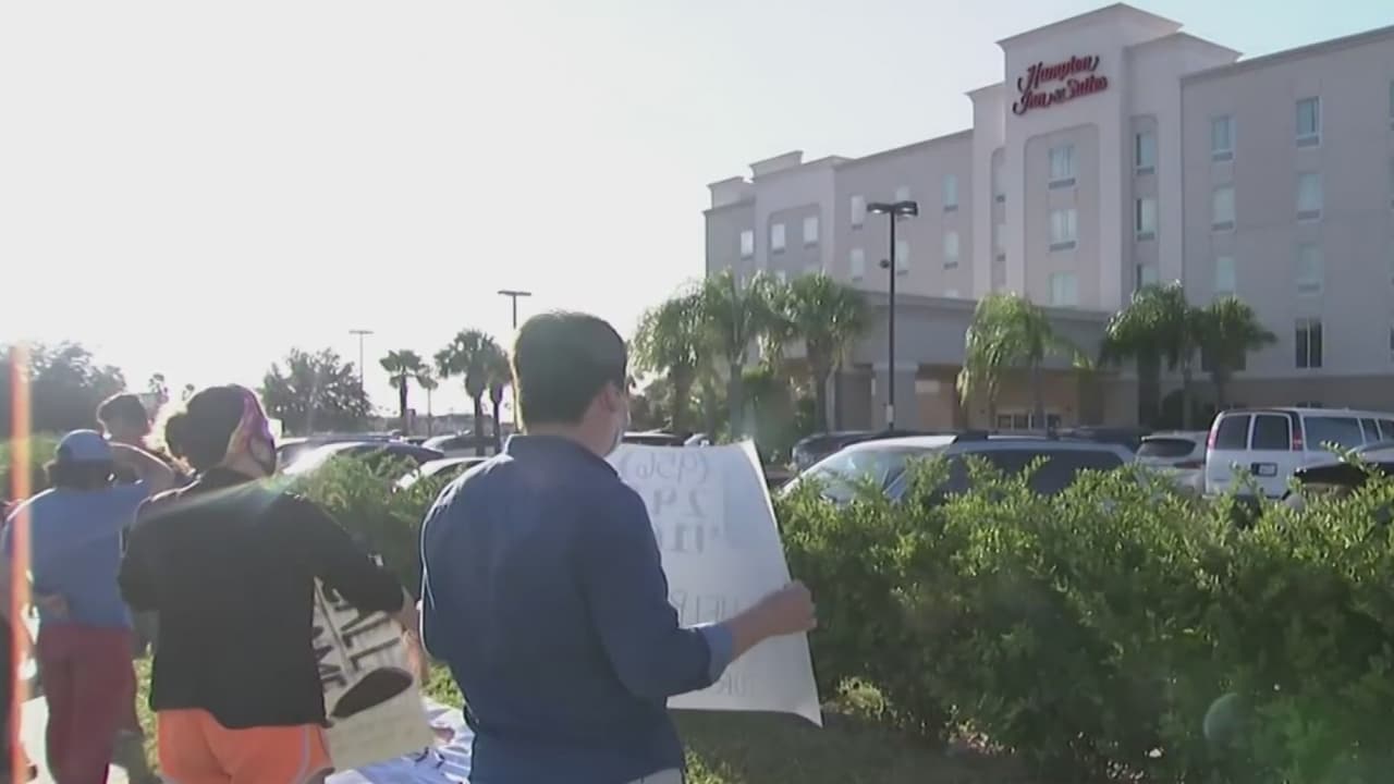Activistas se manifiestan contra encierro de niños en habitaciones de hoteles por parte de ICE
