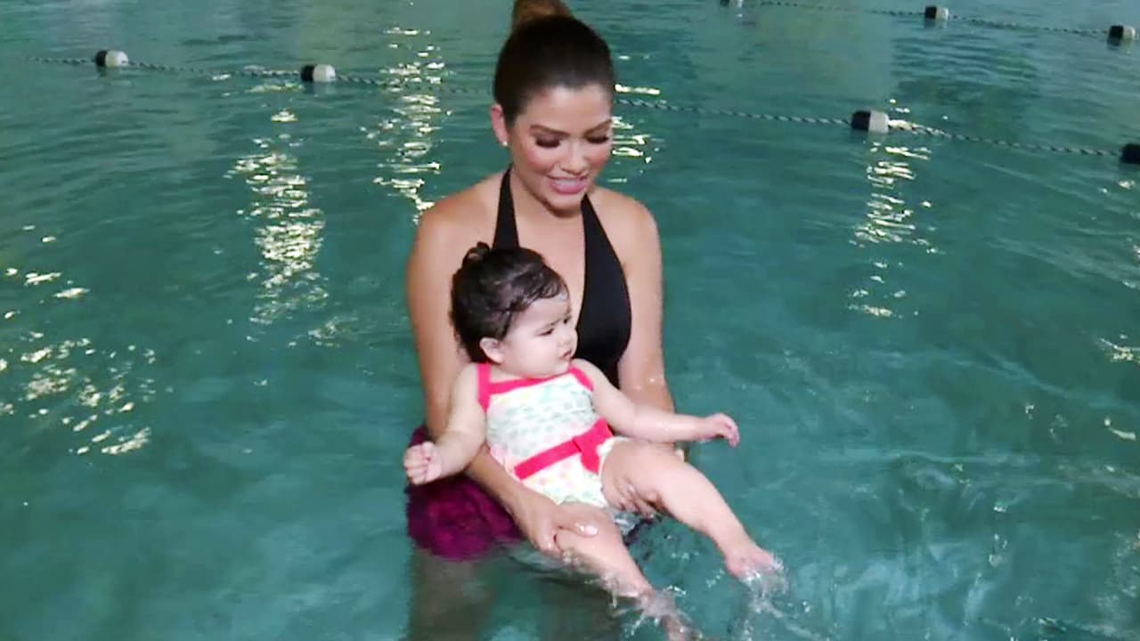 Ana Patricia sabe la importancia de que su pequeña aprenda a nadar desde temprana edad. Mira a Giulietta en sus primeros chapoteos.