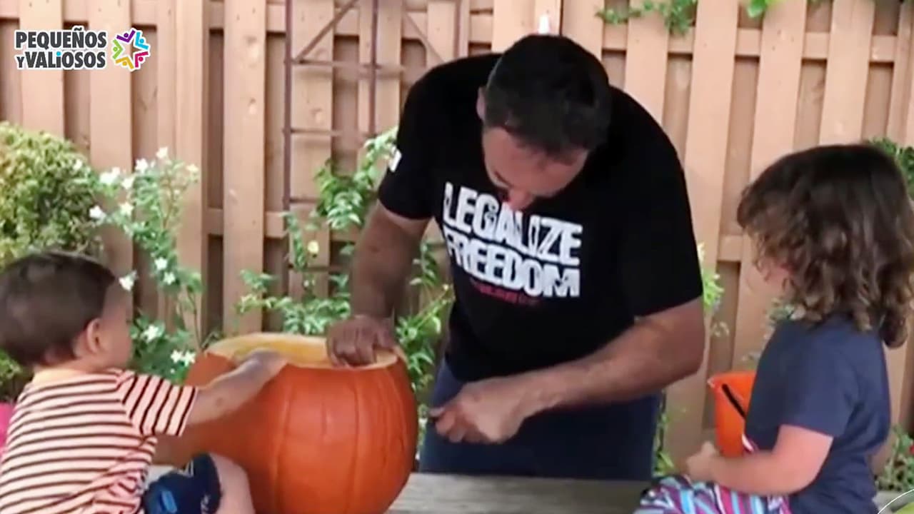 Aprovecha el momento de decorar tu casa con motivo de Halloween para que tus hijos refuercen lo que han aprendido, sobre todo hablando de figuras geométricas. Como este papá que le pregunta a sus pequeños qué formas está haciendo en una calabaza al tallarla especialmente para la Noche de Brujas.