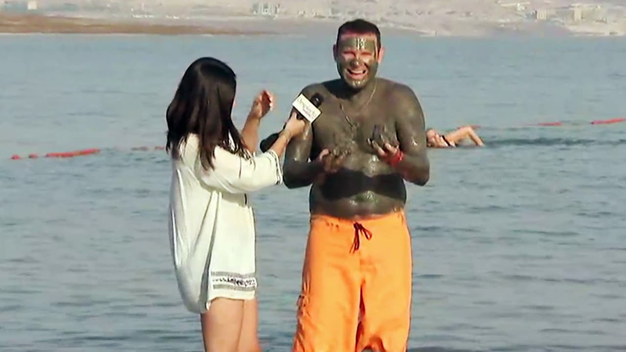 Alan terminó bañado en lodo!. Mira su aventura en el Mar Muerto
