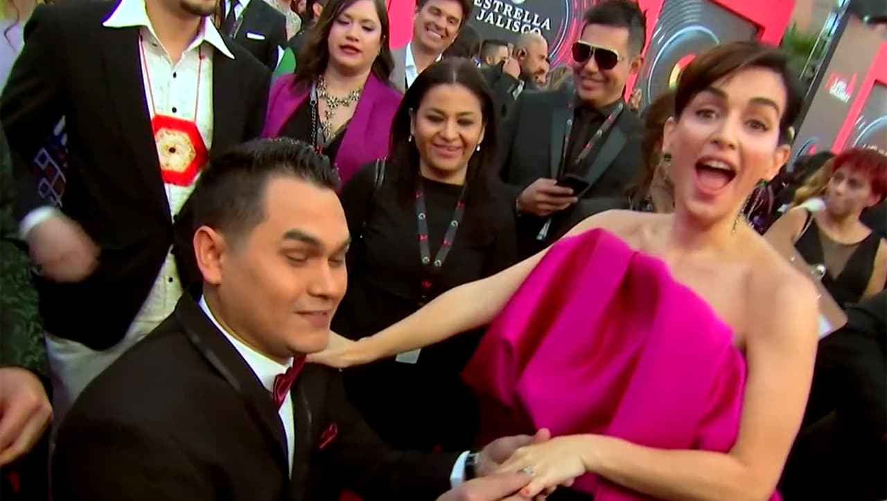Las cámaras de Despierta América fueron testigos del momento en que la conductora de los Latin GRAMMY fue sorprendida con una pregunta que asegura jamás le habían hecho antes. Con El Dasa como testigo, Samuel de la banda 'Los Recoditos' se hincó frente a ella y ya hasta tienen padrinos para la boda.