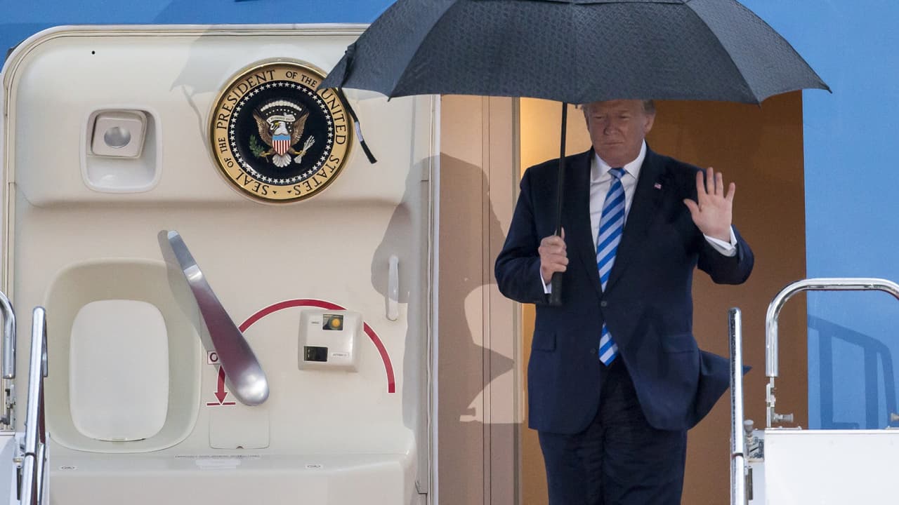 Bajo la lluvia y rodeado de expectativas, Trump llega a Osaka para participar en la cumbre del G20