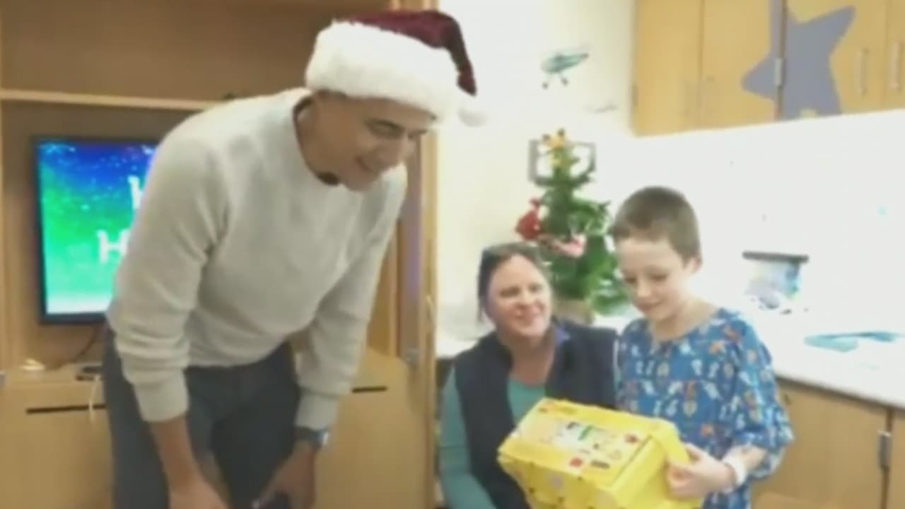 Barack Obama se pone el gorro de Santa Claus para sorprender con regalos a los niños de un hospital