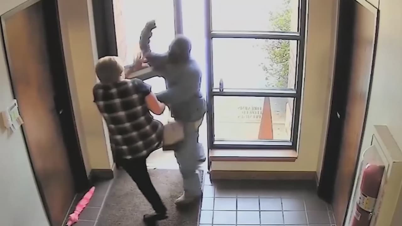 Cámara de seguridad capta a empleada bancaria defendiéndose con uñas y dientes de un asalto en Texas